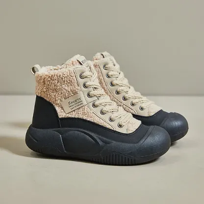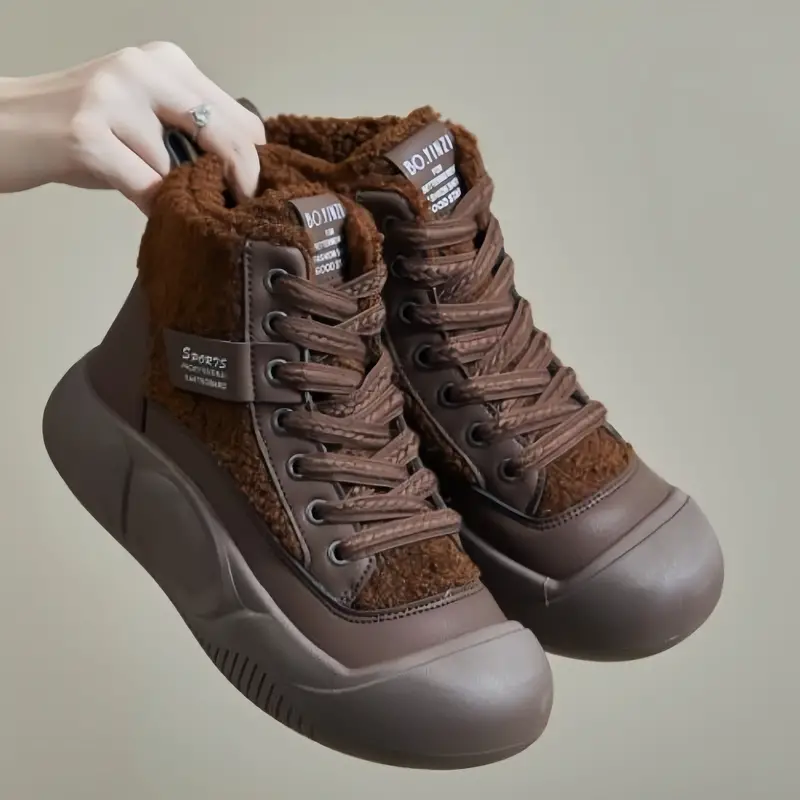 womens platform short boots casual lace up plush lined boots comfortable winter ankle boots details 1